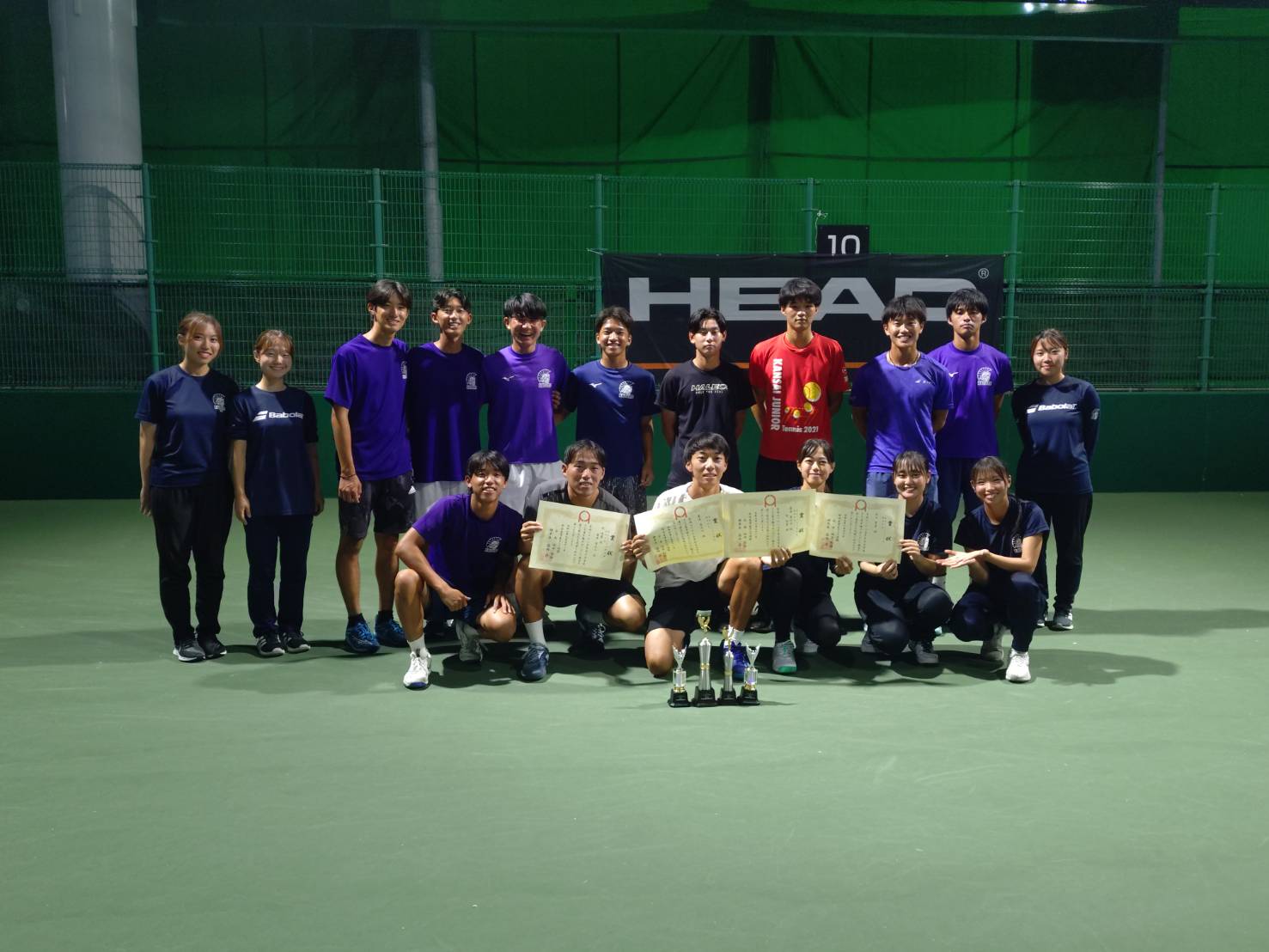 2025年 関西学生テニス選手権大会 男子シングルス準優勝 薦田直哉、男子ダブルス準優勝薦田・坂本組、女子シングルス優勝 千葉陽葵、女子シングルス準優勝 田中伶奈、女子ダブルス優勝 山本・髙山組