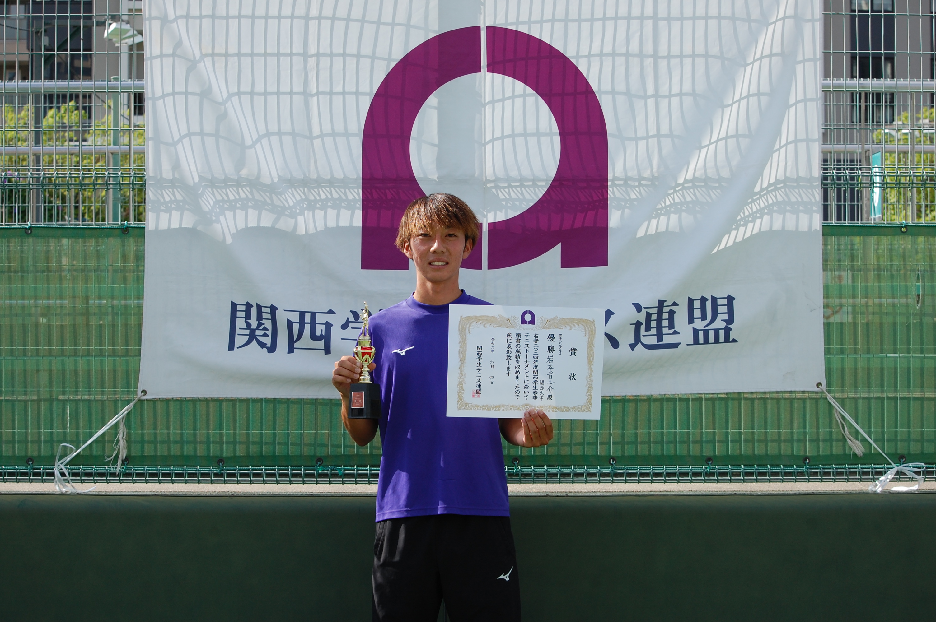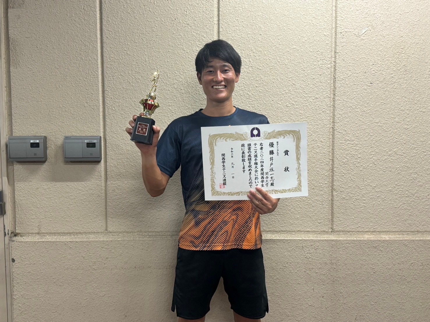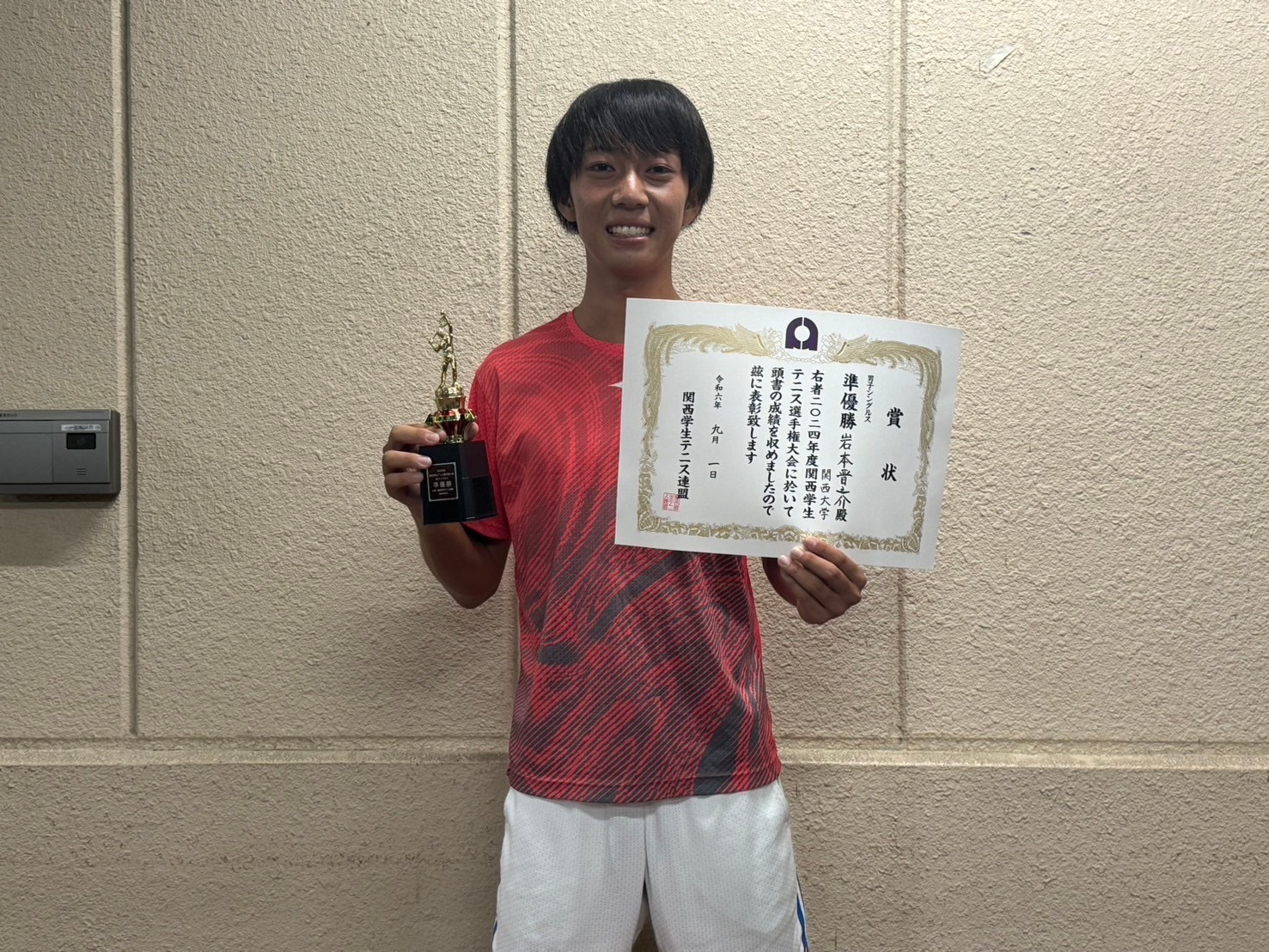 2025年 関西学生春季テニストーナメント 男子シングルス優勝 岩本晋之介、男子ダブルス優勝 堤・岩本組、女子シングルス優勝 髙山揺、女子ダブルス優勝 髙山・中島組