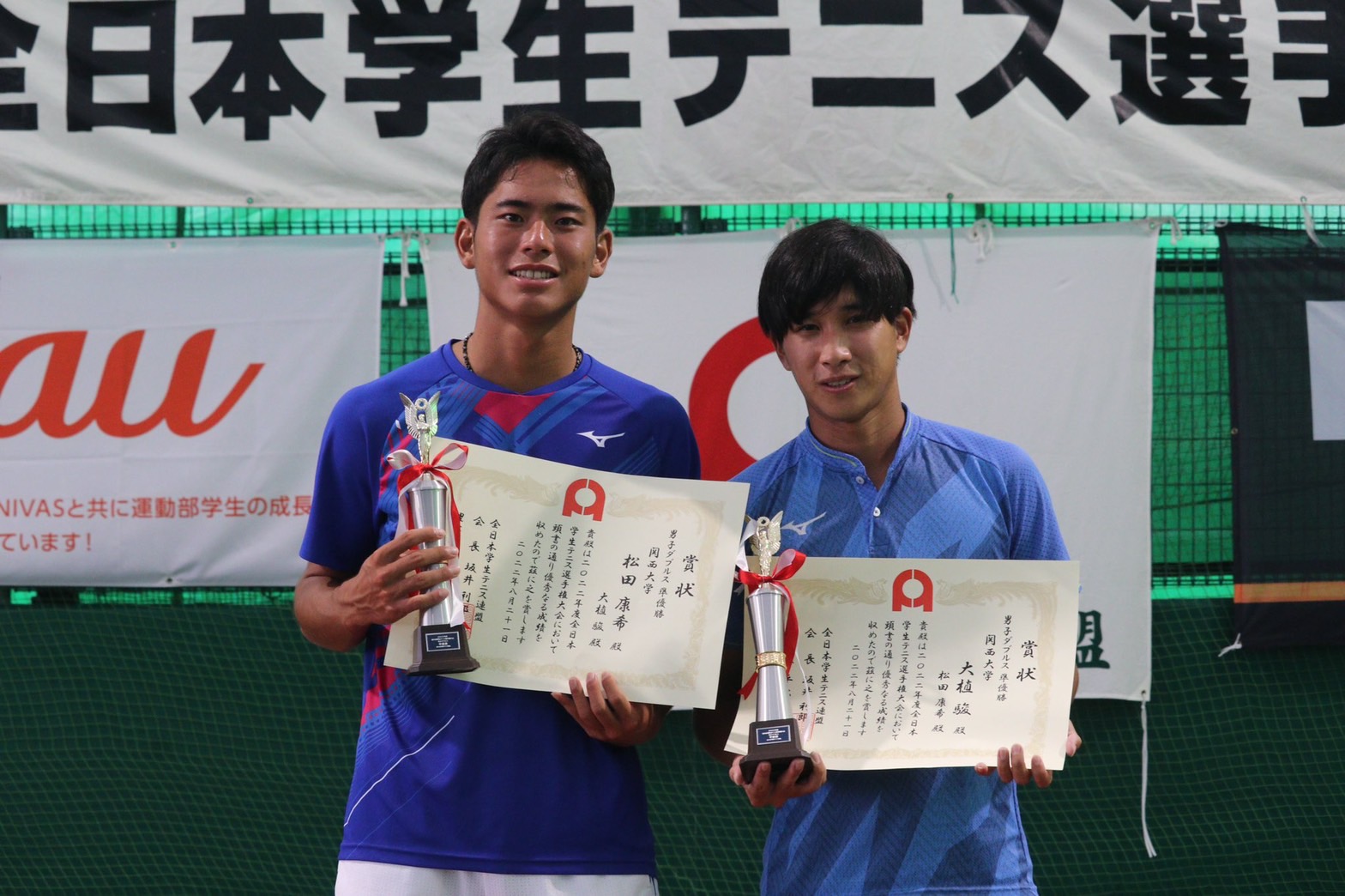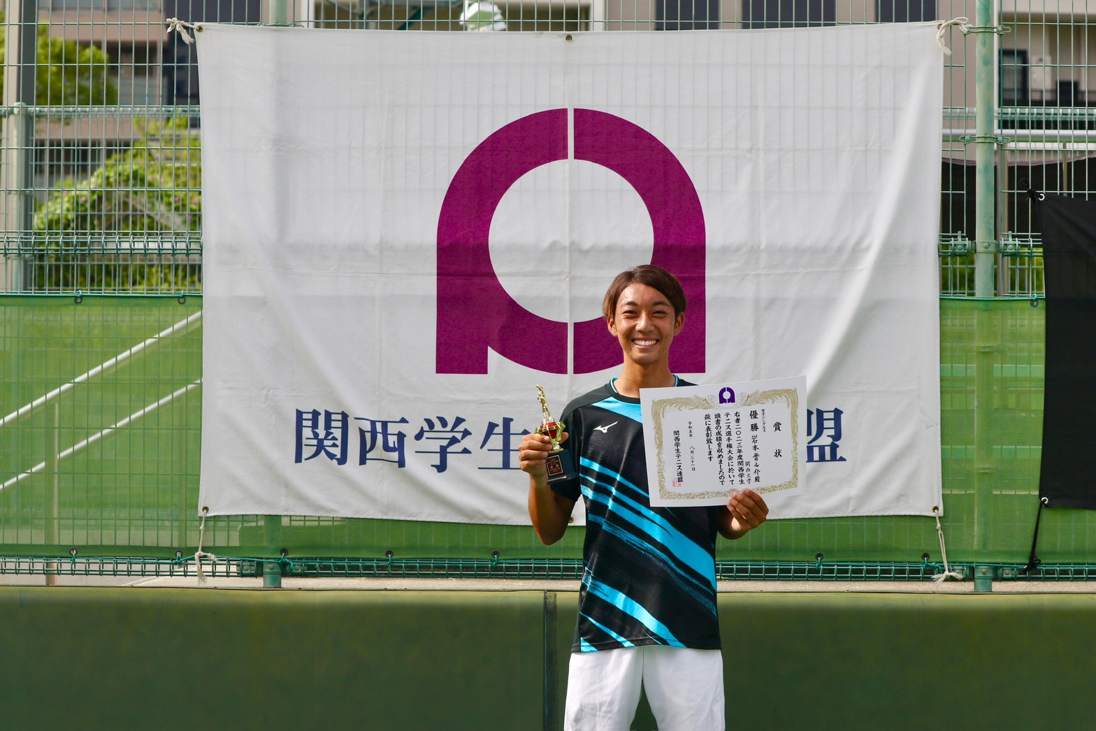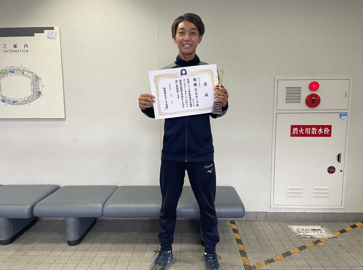 2025年 関西学生春季テニストーナメント 男子シングルス優勝 岩本晋之介、男子ダブルス優勝 堤・岩本組、女子シングルス優勝 髙山揺、女子ダブルス優勝 髙山・中島組