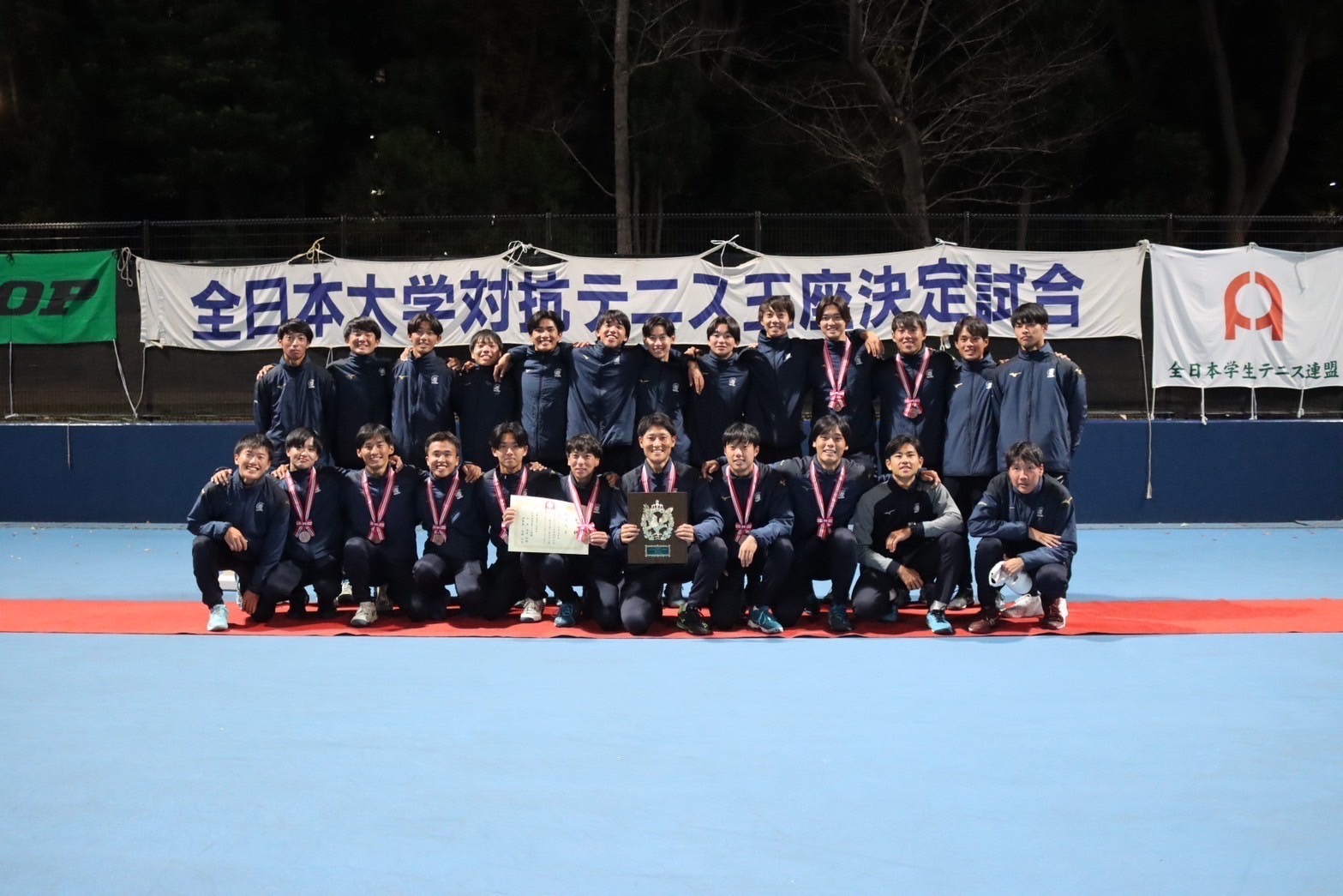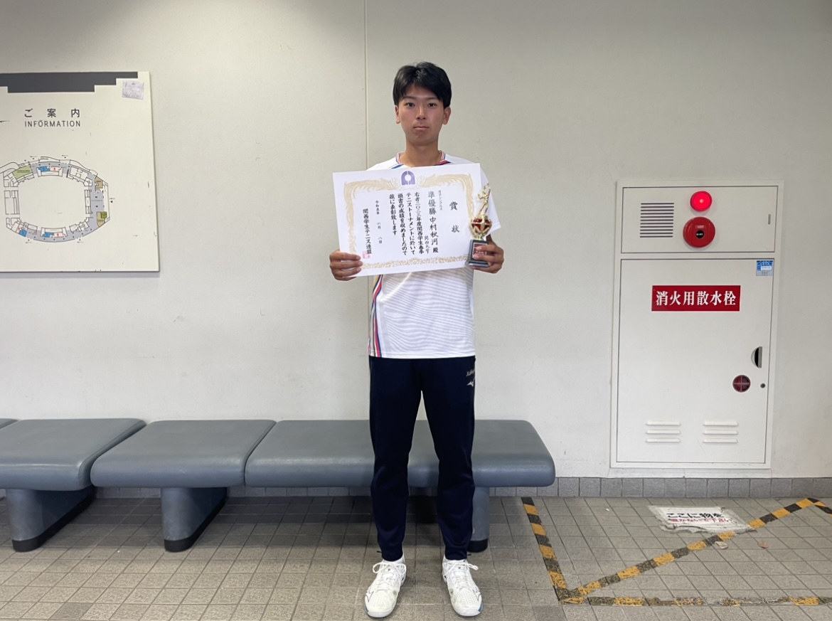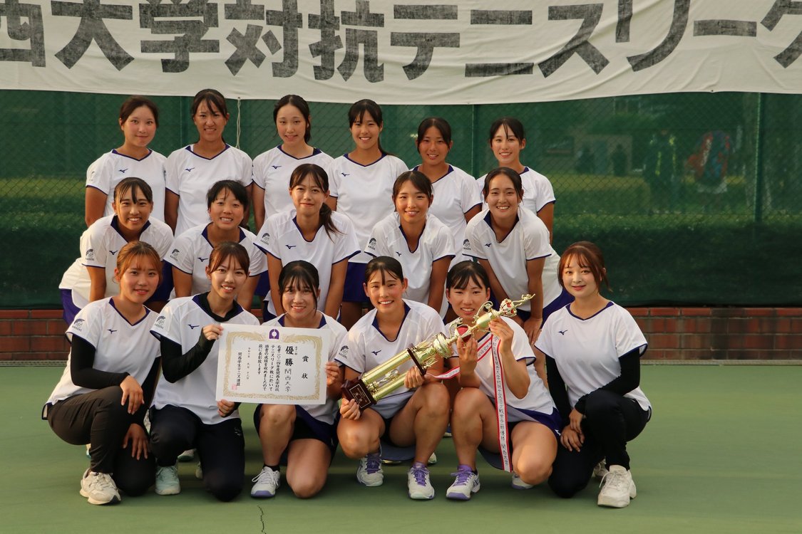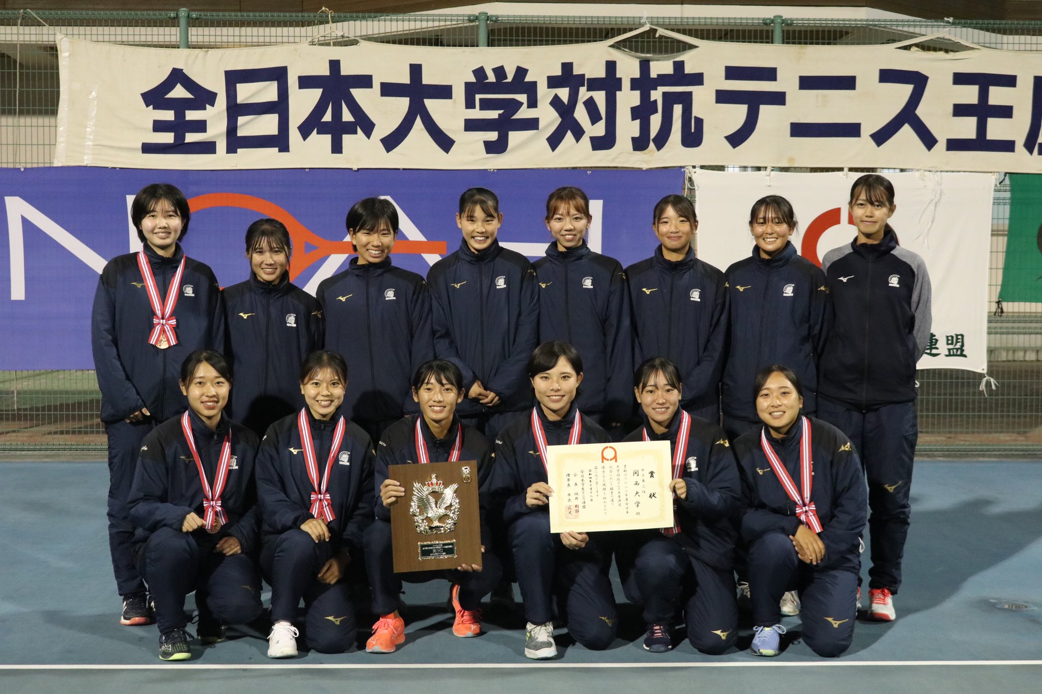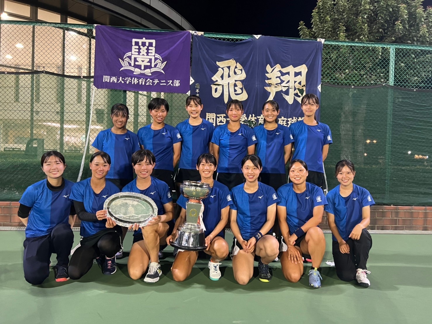2025年 関西学生テニス選手権大会 男子シングルス準優勝 薦田直哉、男子ダブルス準優勝薦田・坂本組、女子シングルス優勝 千葉陽葵、女子シングルス準優勝 田中伶奈、女子ダブルス優勝 山本・髙山組