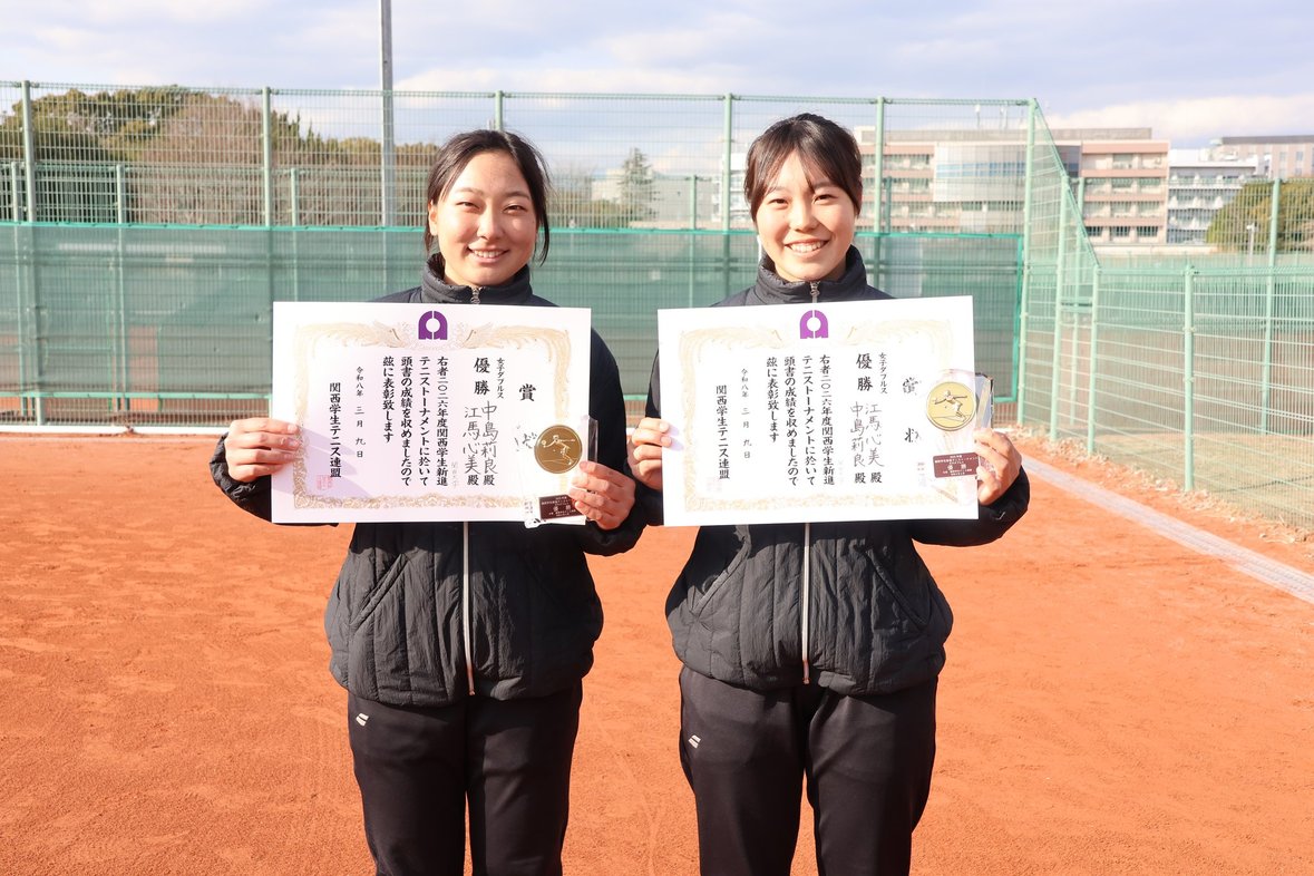 2026年 関西学生新進テニストーナメント 女子ダブルス優勝 江馬・中島組