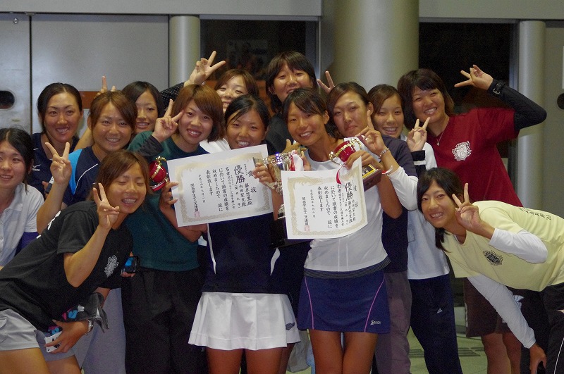 9月2日 靱テニスセンターに於いて行われました関西学生テニス選手権大会で、藤原・内田組が優勝!藤原が女子シングルスで準優勝!という見事な成績をおさめました。単準優勝は女子部史上初の快挙です。OB・OGの皆様、ご父兄の皆様の応援に心より御礼申し上げます。