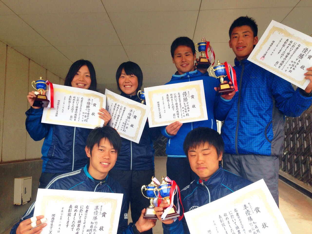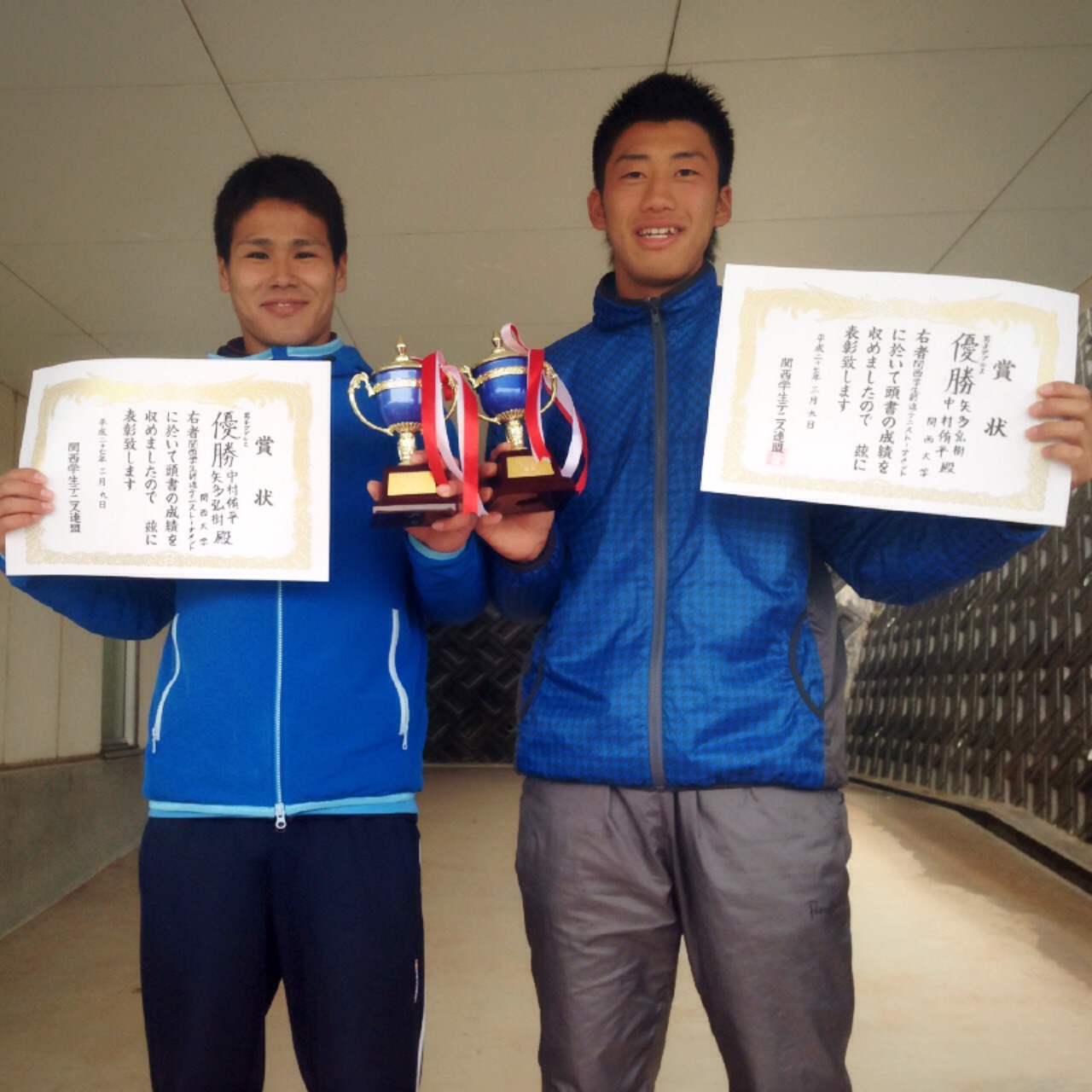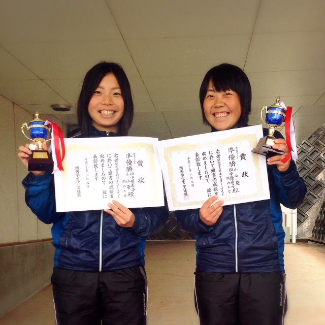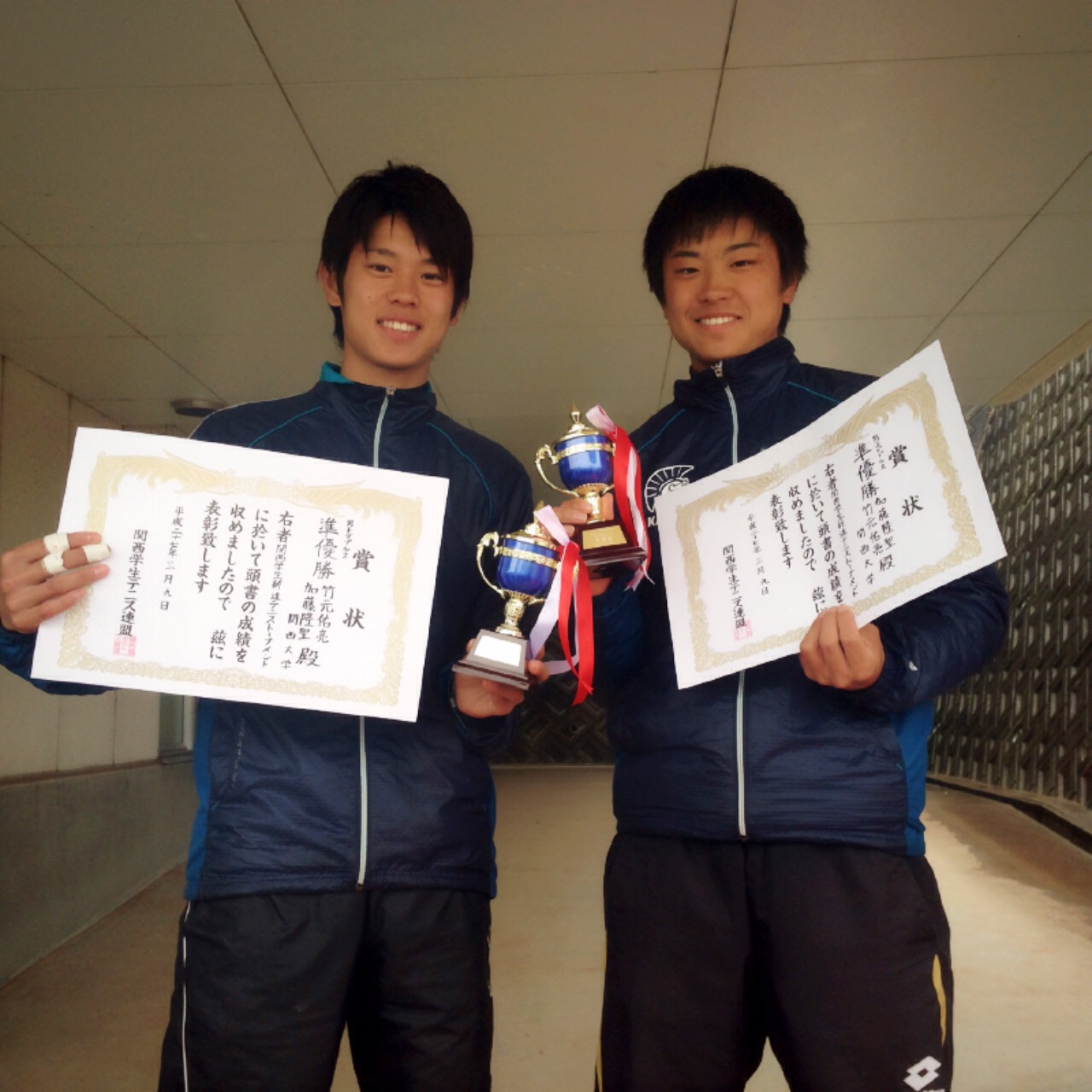 関西学生新進テニストーナメント 2015年3月9日 m.araki 試合速報 0 本日は雨の中柿木様応援ありがとうございました。 男子ダブルスでは、関大同士の試合となりましたが関大から優勝者、準優勝者を輩出することができました。女子ダブルスでは、残念ながら優勝を逃しましたが全力を尽くし準優勝を獲得することができました。 明日は男女シングルスの決勝が行われます。シングルスにおいても、ダブルスに続いて関大から優勝者を輩出できるように選手一丸となって頑張りますので、引き続き応援の程よろしくお願い致します。