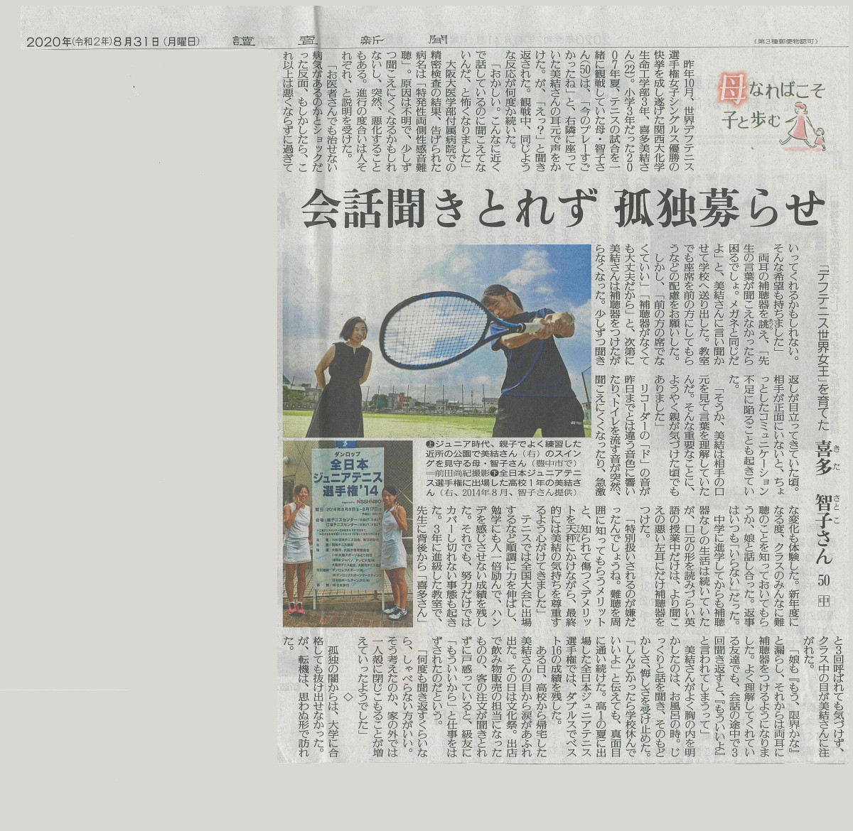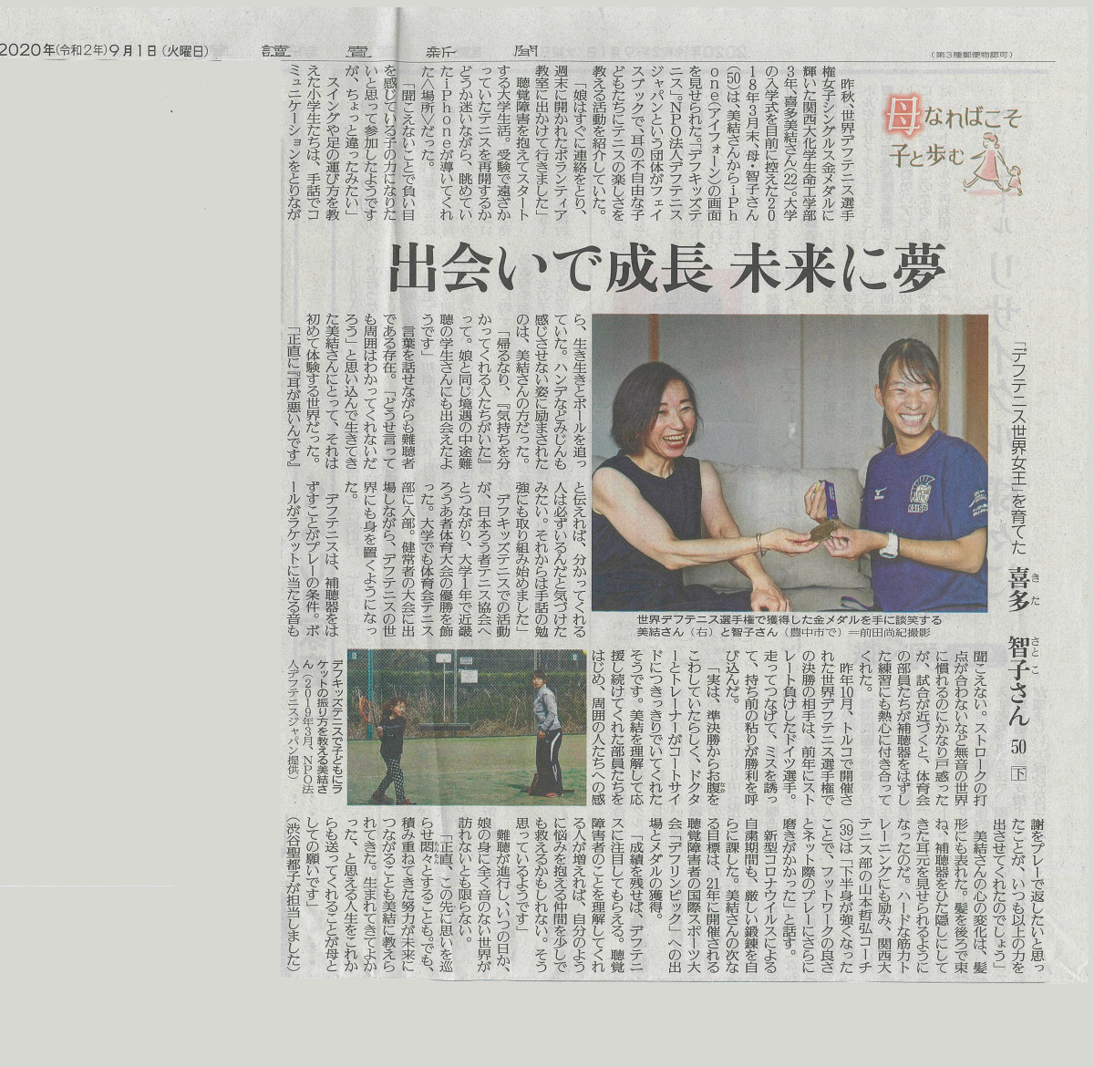 読売新聞の「母なればこそ子と歩む」の連載で8/30~9/1の朝刊、社会面に上・中・下編で3日間掲載されました。
